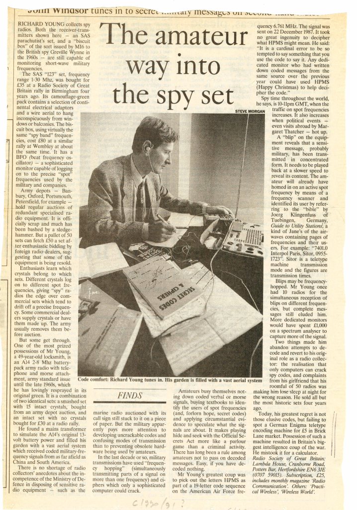 I have before me now a 30-year old newspaper article about a man who collected (and used) spy radios, which ends with: